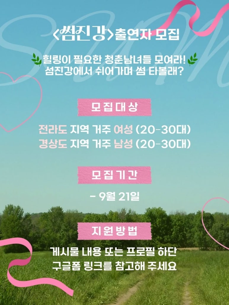 청춘의 감정이 흐르는 이 곳 썸진강 출연자 모집합니다