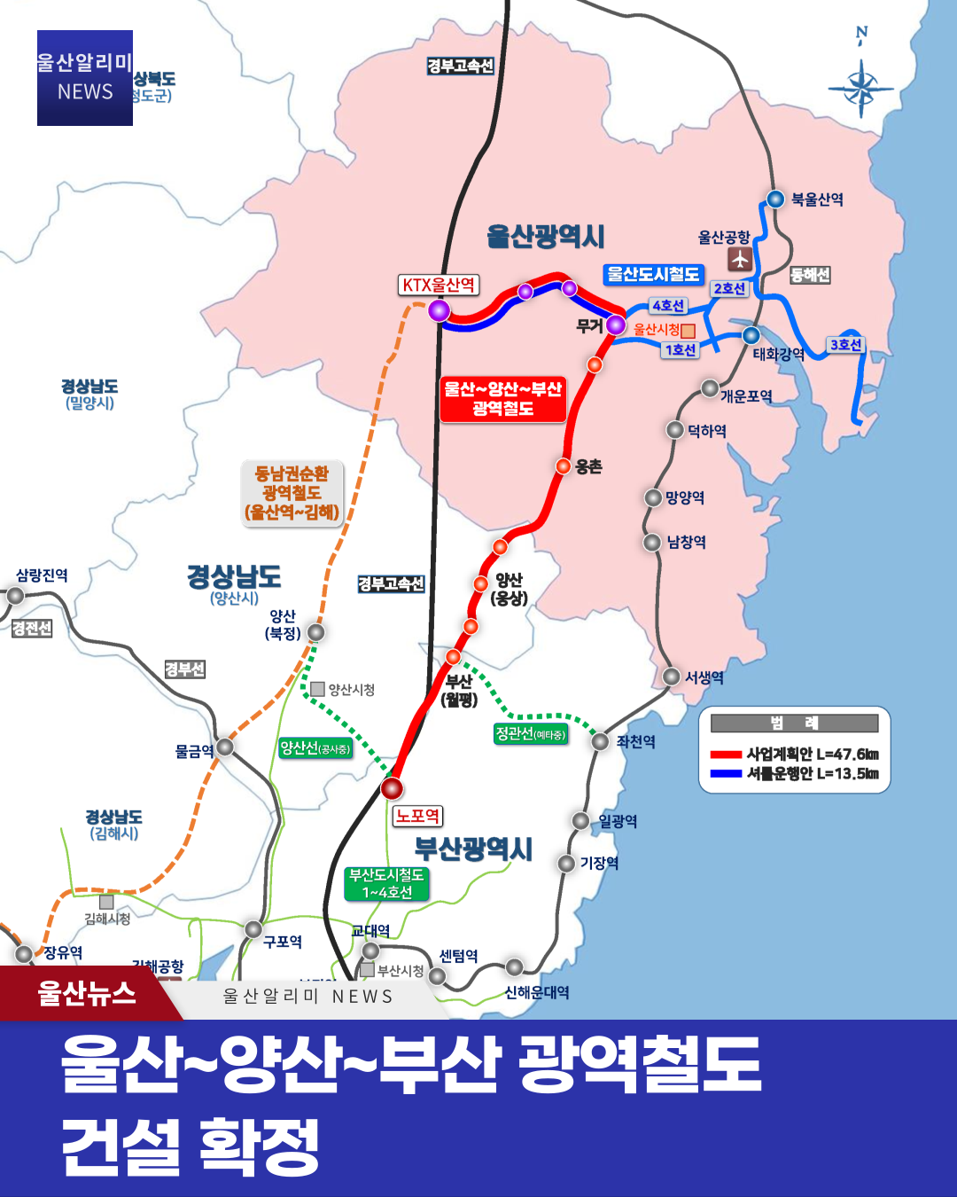 사업 노선은 총 연장 47.6km로, 케이티엑스(KTX)울산역을 출발해
