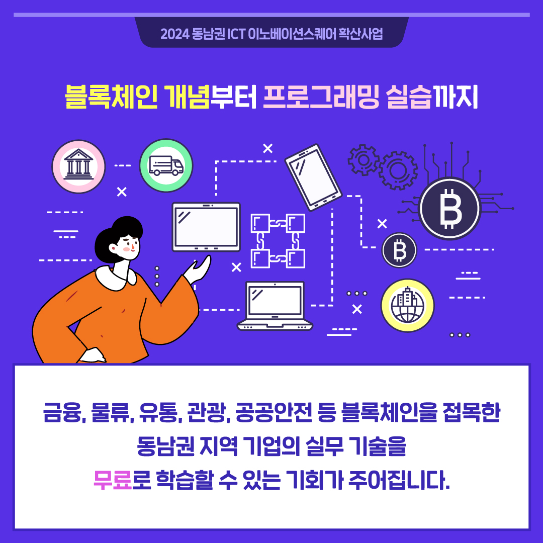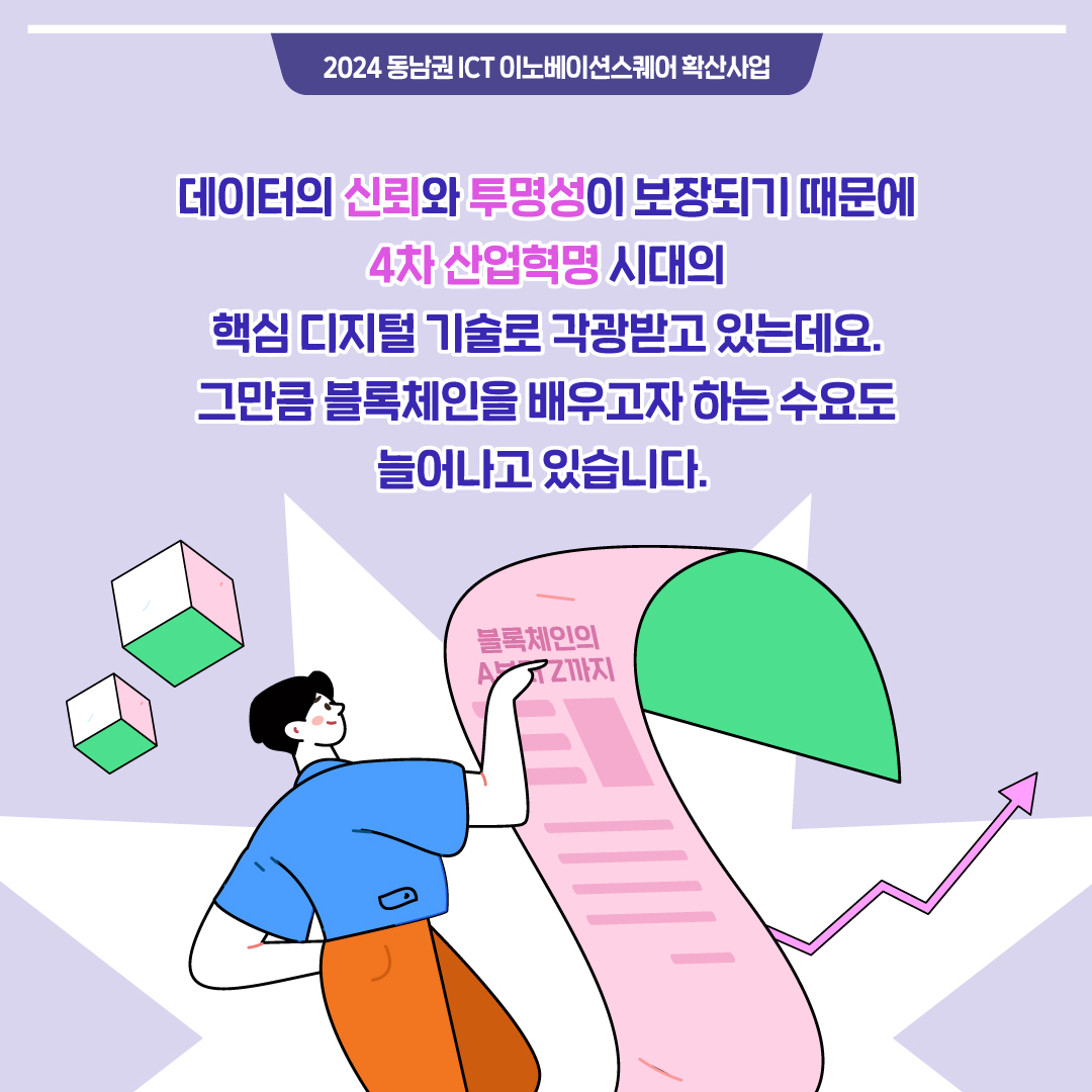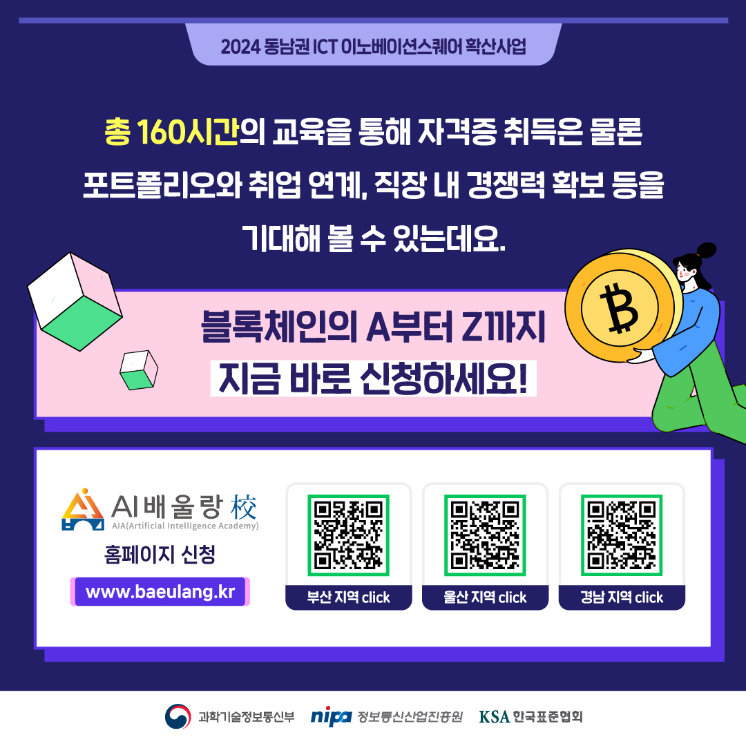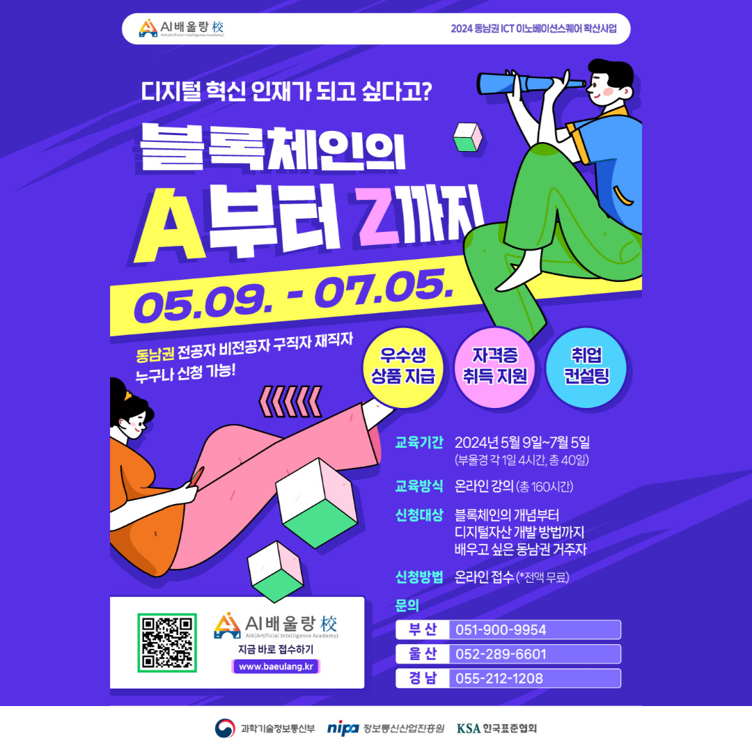 과학기술정보통신부-정보통신산업진흥원 주관의 [동남권 ICT 이노베이션스퀘어 확산사업]의 『블록체인 A to Z』 교육생 모집합니다.